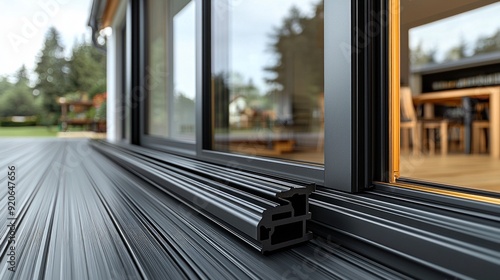 Aluminum profile frames double glazing on construction. PVC metal silver color windows and doors detail cross section. 3D illustration. aluminium protruded profile for windows and doors