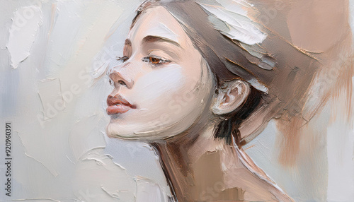 Tekstura, twarz kobiety malowana farbą w modnych odcieniach brązu, tapeta generative ai