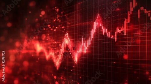 Abstract red background with an arrow going down and a graph, depicting a financial market crash concept.