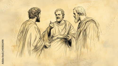 Biblical Illustration of Saul Questioning His Servants About David’s Whereabouts, Doeg Stepping Forward to Report, Bible Wall Art with Beige Background
