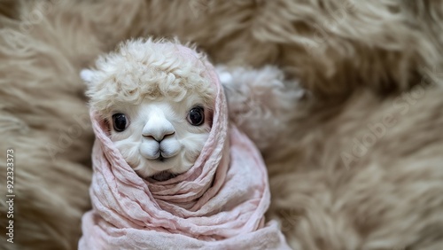 Flauschiges Baby Alpaka mit großen Augen
