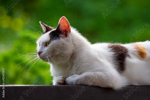 Calm Cat Relaxing Outdoors on a Sunny Day | Spokojny kot relaksujący się na świeżym powietrzu w słoneczny dzień