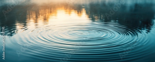 Serene water ripple with soft sunset reflection, creating a calming, tranquil atmosphere. Perfect for nature, relaxation, and meditation themes.