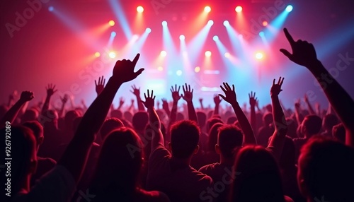 Silhouettes of people enjoying themselves under colorful lights at a concert venue.