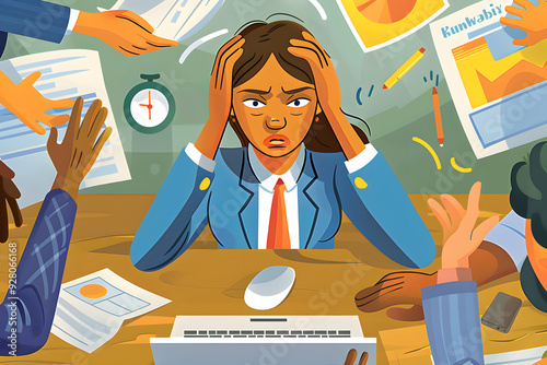 忙しいオフィスでストレスやプレッシャーを感じる女性