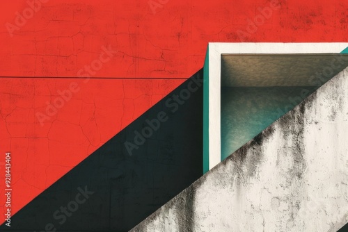 A simple yet striking interior design feature with a bold red and black wall and a classic white door