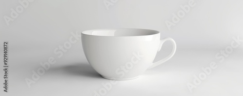 White ceramic teacup on white background, 4K hyperrealistic photo