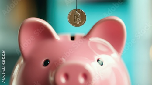 Pink Piggy Bank With Coin Hovering Above The Slot, Symbolizing Savings, Financial Prudence, And Investments.