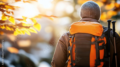 lone man hikes up a snowy mountain trail, facing away, highlighting solitude and perseverance in a winter landscape