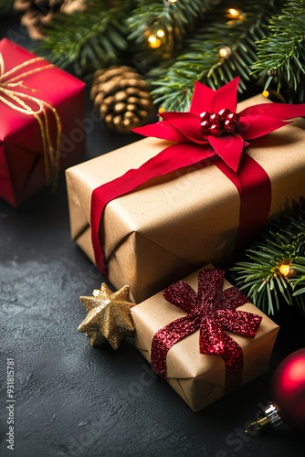 Fondo de temática navideña con espacio para texto. Formato vertical.