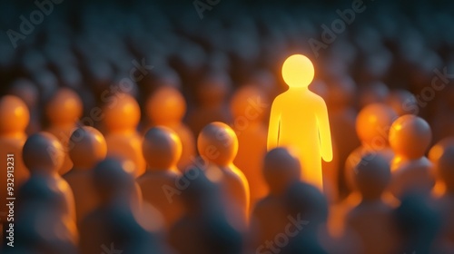 Unique glowing figurine stands out from the crowd, symbolizing the success and confidence of a leader. I'm different - I'm a winner! The concept of individuality and standing out from the