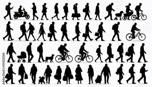 Silhouette vecteur personnes marche isolées noir fond blanc.