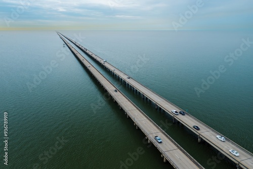 Traffic over the Lake Pontchartrain Causeway Bridge, New Orleans, Louisiana, United States of America.