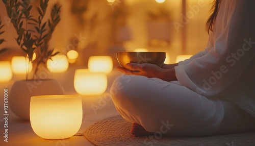 Peaceful Meditation with Tibetan Singing Bowl at Sunset