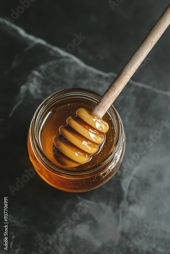 honey in a jar with a wooden spoon
