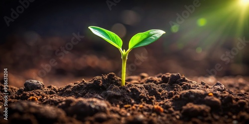 Small green sprout breaking through dark soil, symbolizing growth and perseverance, growth, green, sprout, soil, nature, plant