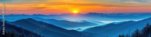 Great Smoky Mountains Winter. Stunning Sunset Panorama Over Blue Ridge Mountains