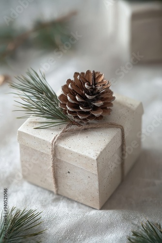 Minimalist box adorned with a delicate pine cone