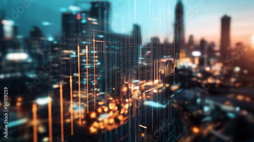 A visual of a cityscape with growing property markers and financial indicators, illustrating the thriving real estate market and potential for profit.