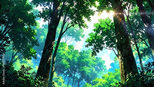 lush green forest with tall majestic trees and a soft background