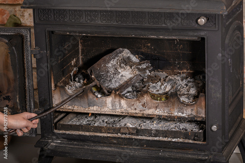Czyszczenie starego żeliwnego kominka, romantyczny nastrój, system ogrzewania domu