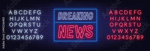 Breaking News Neon Sign on brick wall background..