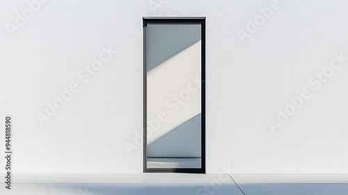 48. **A contemporary sliding window with a narrow aluminum frame, rendered on a pristine white background.