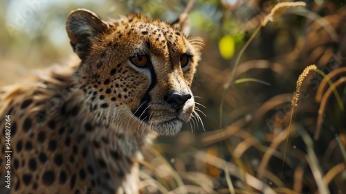 Cheetah in foreground with natural landscape generative ai