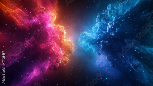 "宇宙に広がる相対的な赤と青のエナジーの背景"