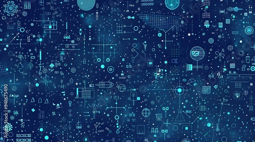 An ASCII art style illustration featuring a random array of symbols and characters scattered across a deep blue background, creating a digital mosaic effect with varying densities and patterns