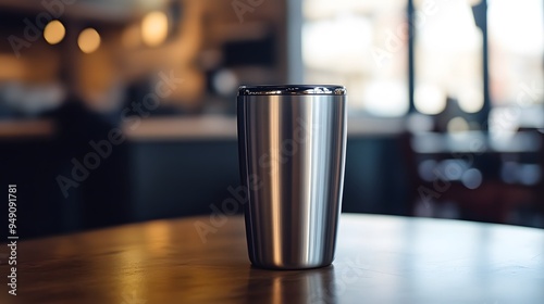テーブルの上に置かれたステンレス製のタンブラー