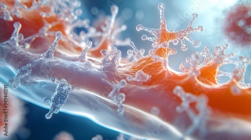 High-resolution microscopy image of a viral infection progressing within a vein, showcasing the intricate details of the biological process