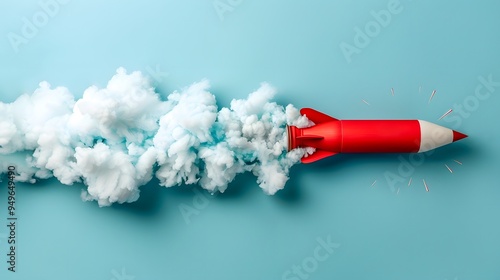 Pencil rocket launch, business startup creative idea innovation begin concept
