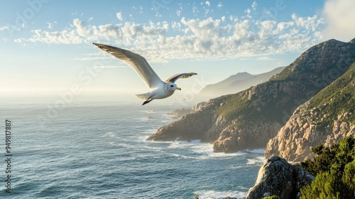 A seabird, the Cape Gull, soars through the skies above the vast Southern African ocean.