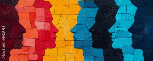 Colorful mural showcasing abstract human profiles, symbolizing diversity and unity in art. Perfect for creative projects.