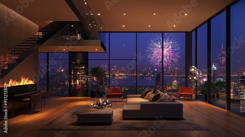 Luxurious Penthouse with Breathtaking City and Fireworks Display