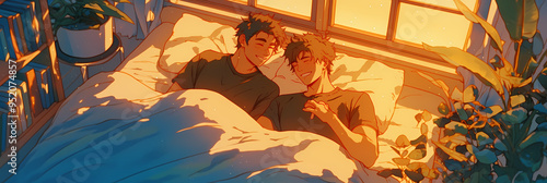 Sweet LGBT Pride Art: Anime Manga Style with Romantic Couples Kissing