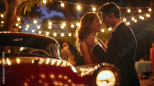 Vintage Summer Evening Dance Party with Retro Lighting and Elegant Couples