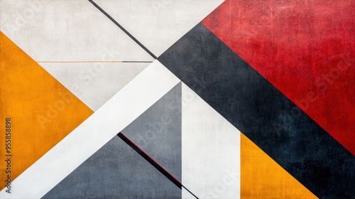 Striking Minimalist Abstract Composition with Intersecting Geometric Shapes and Contrasting Lines.