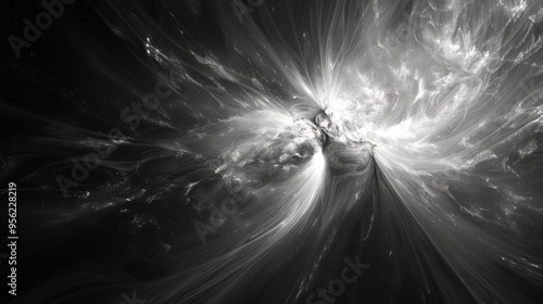 Time and space singularity of dark energy and matter in space computer generated black and white abstract effect