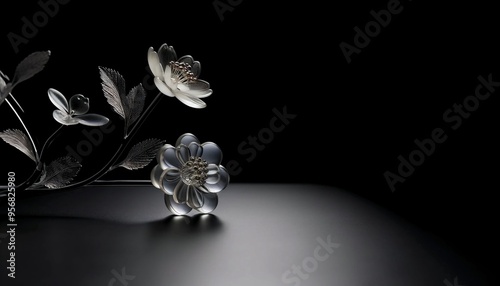 Intricate Glass Flower Sculpture on Dark Background - Modern Minimalist Floral Art Design