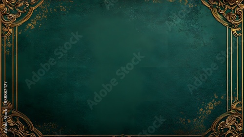 A deep emerald green background with gold foil patterns and a decorative border for a certificate