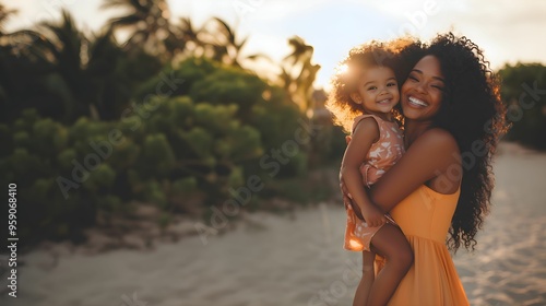 kobieta, dziecko, mama, córka, czarna kobieta, afroamerykanka dziewczynka, plener, zachód słońca, złota godzina, uśmiech, radość, przytulanie, miłość, ciepło, natura, światło, rodzinne, emocje, śmiech