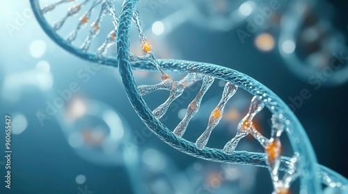 Artistic rendering of a DNA strand unraveling into a living organism, genetic creation, origin of life