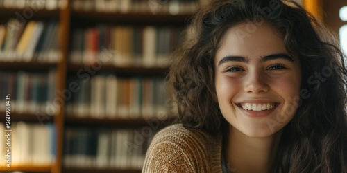 Contented Woman in Library