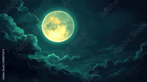 A full moon with clouds icon, creating a mysterious Halloween night scene.