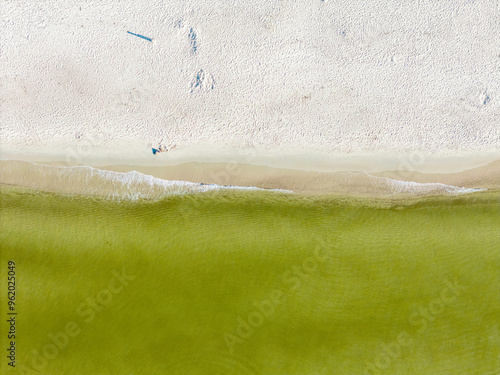 Zdjęcie lotnicze plaży nad morzem. Mierzeja Wiślana nad morzem Bałtyckim