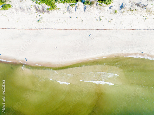 Zdjęcie lotnicze plaży nad morzem. Mierzeja Wiślana nad morzem Bałtyckim