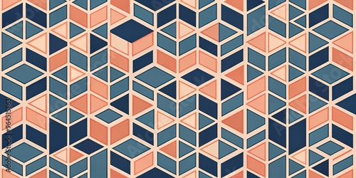 Retro geometric background featuring cubic patterns in muted navy and coral tones