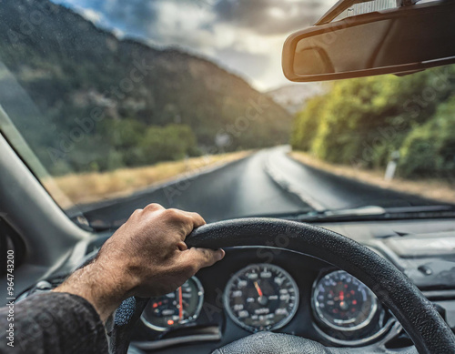 Jazda samochodem prowadzenie auta widok kierowcy na kierownicę